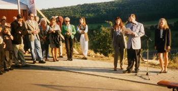 Der Künzelsauer Bürgermeister Volker Lenz überbringt Grußworte bei der offiziellen Firmeneröffnung und gleichzeitiger Grundsteinlegung vom Terrassenhaus 1 im September 1997.